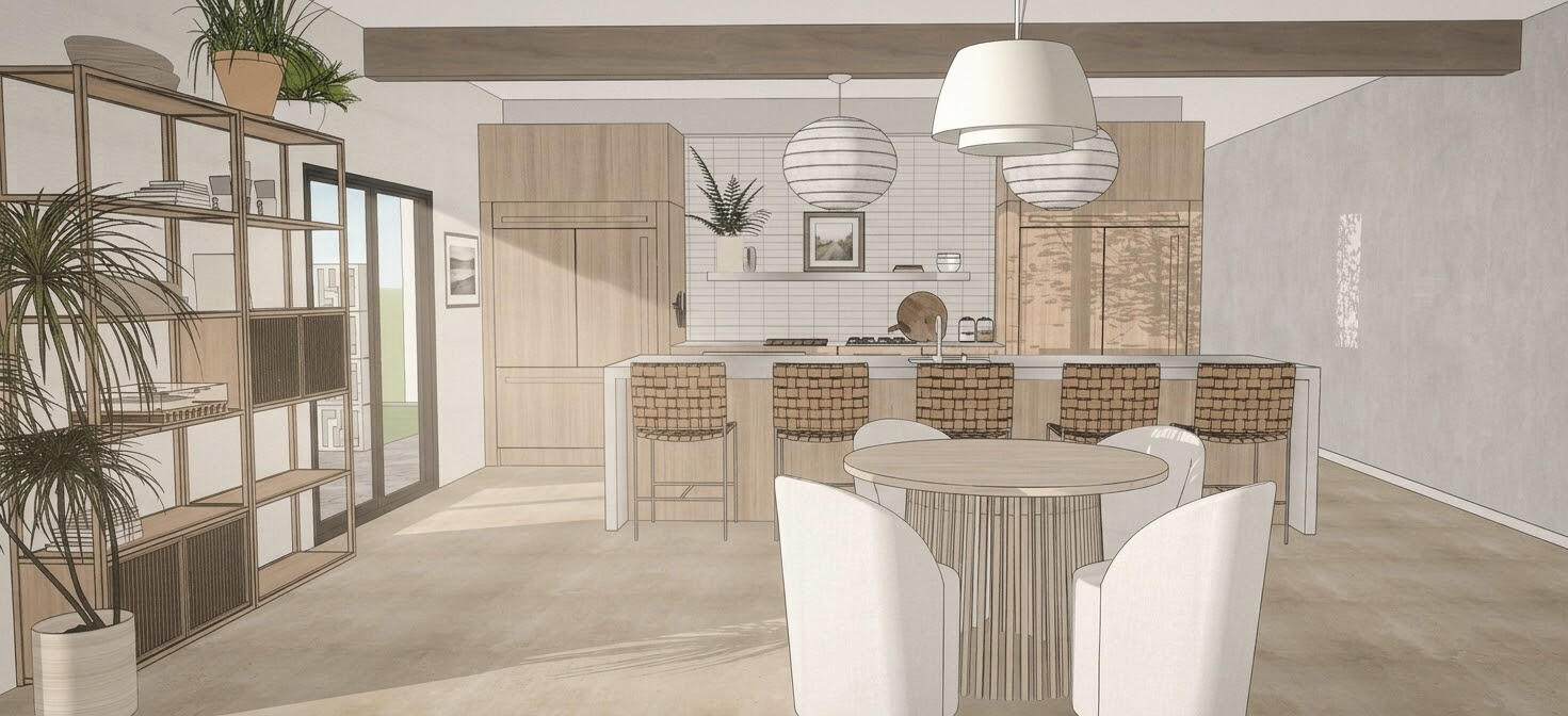 Atmospheric interior and/or exterior renderings that translate ideas into spatial experience. Through light, material, and proportion, we help clients visualize and refine their space before it's built.